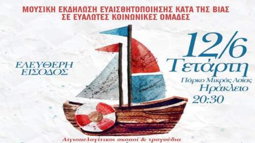 Read MoreΜουσική εκδήλωση ευαισθητοποίησης κατά της βίας με ελεύθερη είσοδο από το Δήμο Ηρακλείου
