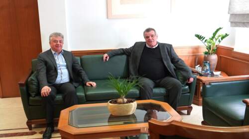 Ο Δήμαρχος Αγ. Βασιλείου Γιάννης Ταταράκης επισκέφθηκε σήμερα τον Περιφερειάρχη Κρήτης Σταύρο Αρναουτάκη. Στη συνάντηση εξετάστηκαν όλα τα αναπτυξιακά θέματα καθώς και τα χρηματοδοτικά «εργαλεία» του ΕΣΠΑ προς αξιοποίηση τους από το Δήμο Αγ. Βασιλείου. Ο Δήμαρχος κ. Ταταράκης ευχαρίστησε τον κ. Αρναουτάκη για τη συνεργασία και τη στήριξη του.