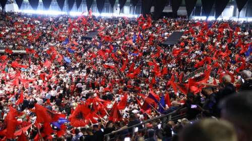 (INTIME NEWS/ΔΗΜΗΤΡΗΣ ΣΑΡΕΛΑΣ) Υπό αυστηρά μέτρα ασφαλείας πραγματοποιείται η συγκέντρωση Αλβανών μεταναστών, μελών και φίλων του κόμματός του Έντι Ράμα στο κλειστό γήπεδο του Γαλατσίου. Ο Αλβανός πρωθυπουργός λίγο πριν τις 12 έφτασε στο κλειστό γήπεδο του Γαλατσίου το οποίο είναι γεμάτο από κόσμο. Εκτιμάται ότι περισσότεροι από 1.000 αστυνομικοί βρίσκονται επί ποδός. Τον Έντι Ράμα συνοδεύουν περίπου 150 άτομα,…