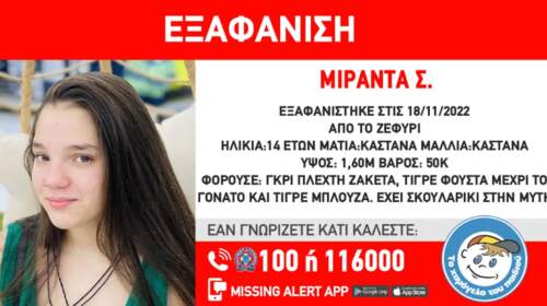 Missing alert εξέδωσε το Χαμόγελο του Παιδιού για την εξαφάνιση της 17χρονης Μαρίας – Φιλοθέη. Στην ανακοίνωσή του αναφέρει: ΕΞΑΦΑΝΙΣΗ ΜΑΡΙΑΣ – ΦΙΛΟΘΕΗΣ, Ν., 17 ΕΤΩΝ #MissingkidAlert Στις 15/04/24, στις 20:22 το βράδυ, εξαφανίστηκε από νοσοκομείο στην περιοχή Ηρακλείου Κρήτης, η Μαρία – Φιλοθέη, Ν., 17 ετών. «Το Χαμόγελο του Παιδιού» προχώρησε στη δημοσιοποίηση των στοιχείων της ανήλικης, κατόπιν εισαγγελικής εντολής, καθώς…