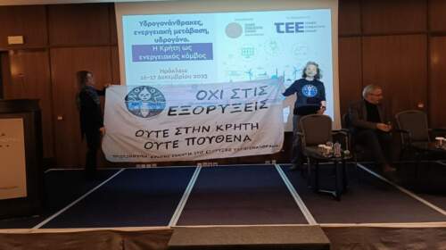 Πανό κατά των εξορύξεων στην Κρήτη στο συνέδριο του ΤΕΕ ΤΑΚ