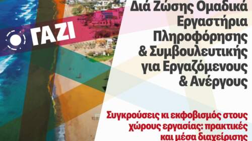Το Κέντρο Κοινότητας του Δήμου Μαλεβιζίου και του Τμήμα Κοινωνικής Προστασίας και Παιδείας σε συνεργασία με το Δίκτυο Πληροφόρησης και Συμβουλευτικής Εργαζομένων και Ανέργων του ΙΝΕ ΓΣΕΕ Κρήτης, διοργανώνουν ένα ομαδικό εργαστήριο ενίσχυσης κι ενδυνάμωσης εργαζομένων και ανέργων του Δήμου. Το θέμα του εργαστηρίου είναι «Συγκρούσεις κι εκφοβισμός στους χώρους εργασίας: πρακτικές και μέσα διαχείρισης» και θα πραγματοποιηθεί την Τρίτη…