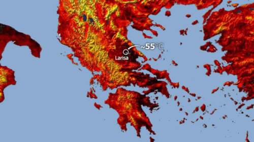 Τους 55 βαθμούς Κελσίου πλησίασε η θερμοκρασία εδάφους στον κάμπο της Θεσσαλίας, χθες Πέμπτη 13 Ιουλίου 2023, σύμφωνα με την επεξεργασία του climatebook. Η καταγραφή έγινε από τον ευρωπαϊκό δορυφόρο Sentinel-3 στις 11:35 ώρα Ελλάδας, ενώ την ίδια ημέρα η θερμοκρασία του αέρα έφτασε τους 42 βαθμούς Κελσίου σε περιοχές της Θεσσαλίας. Να σημειωθεί ότι οι πολύ υψηλές θερμοκρασίες που επικρατούν τις τελευταίες ημέρες σε…