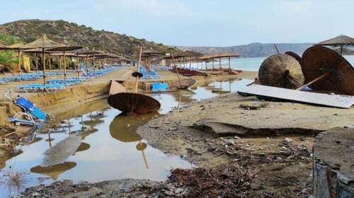 Μεγάλες καταστροφές προκάλεσε το πέρασμα της κακοκαιρίας «Μπάλλος» από το Βάι όπως φανερώνουν οι φωτογραφίες που δημοσιεύει ο Χαρίτος Καφεσάκης. Με το πρώτο φως της ημέρας, αποκαλύφθηκαν οι ζημιές και ξεκίνησε η προσπάθεια για την αποκατάστασή τους. Οι μεγάλες ποσότητες νερού δημιούργησαν ένα χείμαρρο που προκάλεσε αλλοίωση της παραλίας αλλά και παρέσυρε τα ομπρελλοκαθίσματα τα οποία εξυπηρετούν ακόμα και τώρα…