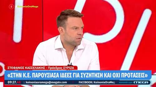 Read MoreΣτ. Κασσελάκης: Έκανα λάθη αλλά υποκριτής δεν είμαι – Πάμε όλοι μαζί – Οι 5 προτάσεις για αλλαγές στον ΣΥΡΙΖΑ