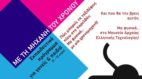 Το Μουσείο Αρχαίας Ελληνικής Τεχνολογίας «Κώστα Κοτσανά» σε συνεργασία με το Παιδικό Μουσείο Exploration προσκαλεί γονείς και παιδιά να ταξιδέψουν πίσω στο χρόνο για να γνωρίσουν και να ανακαλύψουν τις τεχνολογικές εφευρέσεις των αρχαίων Ελλήνων! Και πώς θα ταξιδέψουμε πίσω στο παρελθόν; Μα φυσικά… με μία χρονομηχανή! Και που θα την βρούμε αυτήν; Μα φυσικά… μέσα στο Μουσείο Αρχαίας Ελληνικής…