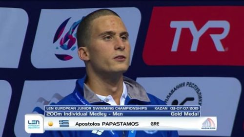 Πρωταθλητής Ευρώπης στα 200μ. μικτή ατομική αναδείχθηκε ο Απόστολος Παπαστάμος, που κατέκτησε το χρυσό μετάλλιο στο Ευρωπαϊκό Πρωτάθλημα κολύμβησης εφήβων/νεανίδων, που φιλοξενείται στο Καζάν. Ο 18χρονος Χανιώτης, ο οποίος θεωρητικά ειδικεύεται στα 400μ. μικτή (!), έκανε μία τρομερή κούρσα στον τελικό του αγωνίσματος και τερμάτισε σε 1:59.93, νικώντας «στο νήμα» τον Ισραηλινό Ρον Πολόνσκι (1:59.98). Ο χρόνος του Παπαστάμου αποτελεί πανελλήνιο ρεκόρ εφήβων, συντρίβοντας το 2:01.23 του Ανδρέα…