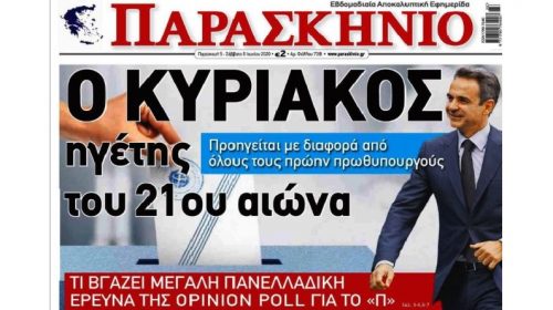 Είπαμε, τα εκατομμύρια που έχωσε και συνεχίζει να χώνει η κυβέρνηση Μητσοτάκη σε όλα τα μέσα που κάνουν καθημερινά αγιασμούς, ήταν πολιτική επένδυση για την ίδια! Να ο… “Τσώρτσιλ”, να ο “Μωυσής”, να ο “Ηρακλής”, να και τώρα ο… “ηγέτης του 21ου αιώνα”! Ο Κυριάκος, κατά τη δημοσκόπηση που παρήγγειλε το “Παρασκήνιο” , κερδίζει όχι μόνο τους σημερινούς πολιτικούς του…