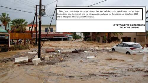 Read MoreΗ κυβέρνηση “ξέχασε” τους πλημμυροπαθείς του δήμου Χερσονήσου!- Η ομολογία του υφυπουργού Οικονομικών