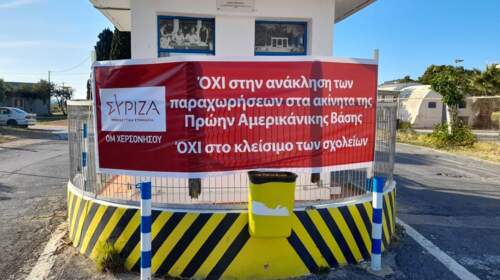Read MoreΈκοψαν με ξυράφι το πανό της ΟΜ του ΣΥΡΙΖΑ στην είσοδο της πρώην Αμερικάνικης Βάσης