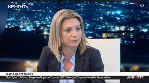 «Φυσικά είμαι πολύ ενοχλητική για τον οποιονδήποτε ένοχο γιατί κάνω ερωτήσεις, φωνάζω, διαμαρτύρομαι…», λέει η μητέρα της 20χρονης Μάρθας που σκοτώθηκε στα Τέμπη «Ακόμα και αν μείνω μόνη, θα συνεχίσω», είπε η Μαρία Καρυστιανού, αναφερόμενη στο σιδηροδρομικό δυστύχημα των Τεμπών. «Θα συνεχίσω ακόμη κι αν μείνω μόνη», «θα κάνω τα πάντα για να δω τους υπεύθυνους για τον θάνατο του παιδιού…