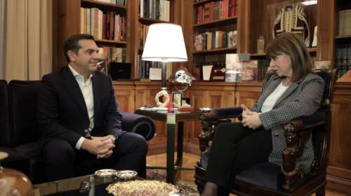 Το κατώφλι του Προεδρικού Μεγάρου πέρασε λίγο μετά τις 18.00 ο Αλέξης Τσίπρας καθώς έχει συνάντηση με την Κατερίνα Σακελλαροπούλου. Κατά τον σύντομο διάλογο που είχαν παρουσία των δημοσιογράφων ο Αλέξης Τσίπρας είπε: «Ζήτησα να σας συναντήσω προκειμένου να εκφράσω την αγωνία και τον βαθύτατο προβληματισμό μου για φαινόμενα που διαταράσσουν την εύρυθμη λειτουργία του πολιτεύματος. Η ελληνική δημοκρατία παραμένει…