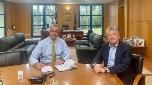 Με τον Υπουργό Υποδομών και Μεταφορών Χρήστο Σταϊκούρα συναντήθηκε σήμερα στην Αθήνα ο Περιφερειάρχης Κρήτης Σταύρος Αρναουτάκης. Στη διάρκεια της συνάντησης συζητήθηκαν όλα τα θέματα που αφορούν στο Βόρειο Οδικό Άξονα και τα έργα που εξελίσσονται στο νέο αεροδρόμιο Καστελλίου. Επίσης, το έργο εμπλουτισμού του φράγματος Μπραμιανών της Ιεράπετρας καθώς και το σύνολο των έργων αρμοδιότητας του Υπουργείου Υποδομών και…