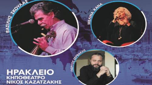Συναυλία με τους Β. Σκουλά-Μ. Κανά – Γ. Ζερβάκη-Ελεύθερη είσοδος για τους πολίτες Την Τετάρτη 2 ΑΥΓΟΥΣΤΟΥ στις 9:00 μ.μ. στο Κηποθέατρο του Δήμου Ηρακλείου, «ΝΙΚΟΣ ΚΑΖΑΝΤΖΑΚΗΣ» θα παρουσιαστεί μια μεγάλη συναυλία-ύμνο στην ομορφιά και τη γενναιότητα της κρητικής ψυχής, με την οποία θα εορτασθεί η συμπλήρωση 110 χρόνων από την Ένωση της Κρήτης με την Ελλάδα. Διοργάνωση : Περιφέρεια…