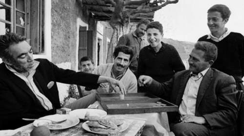 Η φωτογραφία είναι από τα γυρίσματα της ταινίας “Αλέξης Ζορμπάς” του Μιχάλη Κακογιάννη στην Κρήτη, το 1964. Ο Άντονι Κουίν παίζει τάβλι με Κρητικούς, σε κάποιο διάλειμμα των γυρισμάτων στον “Σταυρό” του Ακρωτηρίου Χανίων. Τη φωτογραφία τράβηξε ο φωτογράφος και κινηματογραφικός παραγωγός Sam Shaw και βρίσκεται στη συλλογή του. Η ταινία Αλέξης Ζορμπάς (Zorba the Greek) είναι βρετανική-ελληνική ταινία του 1964, σε…