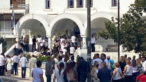 Φίλοι και συγγενείς αποχαιρετούν για πάντα την δολοφονημένη από τον σύντροφό της φαρμακοποιό ο οποίος την έσπρωξε στα βράχια στην Φολέγανδρο με αποτέλεσμα να χτυπήσει και να πέσει στη θάλασσα όπου επήλθε ο πνιγμός της σύμφωνα με την ιατροδικαστική εξέταση. Τραγικές φιγούρες οι γονείς της και τα τρία αδέρφια της.Την ώρα που έφτανε η σορός της κοπέλας στην εκκλησία κάποιοι κρατούσαν ένα πανό που…