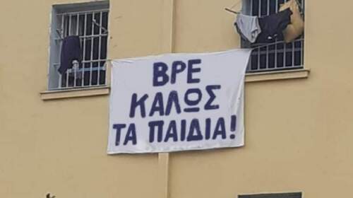 Πανό… “υποδοχής” που αναρτήθηκε σε ελληνικές φυλακές, ενόψει του εγκλεισμού των νεοναζί της εγκληματικής οργάνωσης! Προφανώς φώτοσοπ, αλλά επιτυχημένο! Φωτο από Κώστας Βαξεβάνης