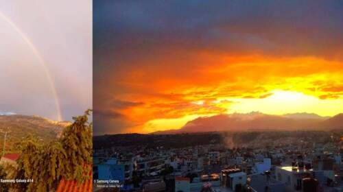Πανέμορφες εικόνες από τον ουρανό του Ηρακλείου δημοσίευσαν πολίτες στο γκρουπ των Μετεωκρητών, μετά την πολυπόθητη βροχή. Εντυπωσιακές είναι οι εικόνες με ουράνιο τόξο, ενώ τα χρώματα που σχηματίστηκαν στον ουρανό κόβουν την ανάσα. Δείτε φωτογραφίες: ελενη ορφανακη – Ηράκλειο Niki Kavvalou από το Ταλως plaza Mieczyslawa Kurowska Καλέσσα Αντωνης Ρογδακης