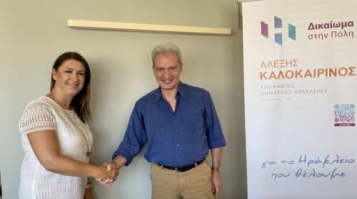 Την συμμετοχή της Έφης Μαλλιαράκη στο ψηφοδέλτιο της δημοτικής παράταξης «Δικαίωμα στην Πόλη» ανακοίνωσε ο υποψήφιος Δήμαρχος Ηρακλείου Αλέξης Καλοκαιρινός. Σε δήλωσή του ο επικεφαλής της δημοτικής παράταξης «Δικαίωμα στην Πόλη» Αλέξης Καλοκαιρινός τόνισε: «Μια ακόμη νέα υποψηφιότητα έρχεται να ενισχύσει τον συνδυασμό μας. Η παράταξή μας μεγαλώνει, η ομάδα των υποψηφίων μας ισχυροποιείται, με την στοχοπροσήλωσή μας να παραμένει…