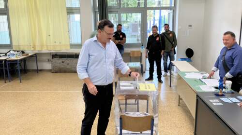 Στο 3ο Γυμνάσιο Χανίων άσκησε το εκλογικό του δικαίωμα ο Αλέκος Μαρινάκης