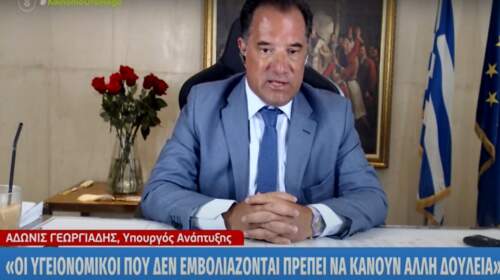 Read MoreΑπειλεί ο Γεωργιάδης: “Οι υγειονομικοί που δεν εμβολιάζονται πρέπει να κάνουν άλλη δουλειά» (βίντεο)