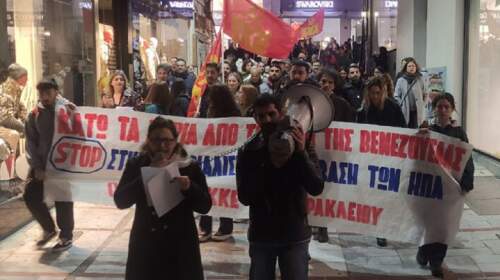 Πικετοφορία ενάντια στην ιμπεριαλιστική επέμβαση των ΗΠΑ στη Βενεζουέλα πραγματοποίησαν το βράδυ του Σαββάτου οι Οργανώσεις Ηρακλείου του ΚΚΕ και της ΚΝΕ. Η κινητοποίηση ξεκίνησε από την πλατεία Λιονταριών και κατευθύνθηκε στους κεντρικούς δρόμους της πόλης. Οι Οργανώσεις του ΚΚΕ και της ΚΝΕ ενημέρωσαν πλατιά τους εργαζόμενους και τον λαό της πόλης και τους κάλεσαν να εκφράσουν μαζικά και μαχητικά…