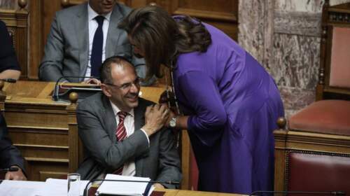 Την απόφαση αφαίρεσης της ροζ σημαίας από το προξενείο της χώρας μας στη Νέα Υόρκη επέκριναν Ντόρα Μπακογιάννη και Ρένα Δούρου κατά την κλειστή συνεδρίαση της Επιτροπής Εξωτερικών Υποθέσεων της Βουλής, παρουσία του Γιώργου Γεραπετρίτη. Δείτε επίσης: “Ροζ σημαία”: Νατσιός (της “Νίκης”) και στη συνέχεια Γεραπετρίτης ζήτησαν να κατέβει έργο τέχνης για τις γυναικοκτονίες Συγκεκριμένα, η Ντόρα Μπακογιάννη διαμαρτυρήθηκε, λέγοντας…