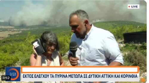 Στο έλεος του πύρινου μετώπου βρίσκονται οι κάτοικοι στη Μάνδρα καθώς όπως καταγγέλλουν, ενώ βλέπουν την φωτιά να κατευθύνεται προς τα σπίτια τους δεν βλέπουν εναέρια μέσα πυρόσβεσης να επιχειρούν. «Νιώθουμε ότι βρισκόμαστε στο έλεος ανίκανων ευθυνόντων» δηλώνει στην τηλεόραση του Open η Μαίρη Καρά, κάτοικος στο Πανόραμα Μάνδρας όπου ζουν 300 περίπου άνθρωποι. «Βλέπουμε τις φωτιές να πλησιάζουν τα σπίτια μας» σημειώνει η ίδια προσθέτοντας ότι «δεν πετάει τίποτα εδώ και πολύ ώρα. Δεν ξέρουμε τι να…