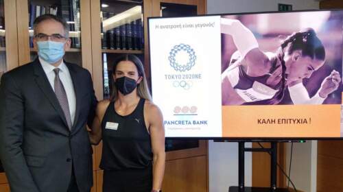 Καλή επιτυχία στην πρωταθλήτρια στίβου Ειρήνη Βασιλείου για τη συμμετοχή της στην Ολυμπιάδα του Τόκυο ευχήθηκαν ο Διευθύνων Σύμβουλος της Παγκρήτιας Τράπεζας κ. Αντώνης Βαρθολομαίος και μέλη της ανώτερης διοίκησης, στο πλαίσιο σύντομης τιμητικής τελετής που πραγματοποιήθηκε στην έδρα της Τράπεζας στο Ηράκλειο. Στην συνάντηση παρέστη διαδικτυακά ο Πρόεδρος του Διοικητικού Συμβουλίου κ. Δημήτρης Δημόπουλος, ο οποίος συνεχάρη την αθλήτρια…