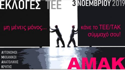 Του Σήφη Φανουράκη* Στις 3 του Νοέμβρη διεξάγονται οι εκλογές του ΤΕΕ. Το στίγμα αυτών των εκλογών διαμορφώνεται και από την συμμετοχή της ΑΜΑΚ στο προεδρείο του τοπικού τμήματος του ΤΕΕ, τον τελευταίο ενάμιση χρόνο. Είναι γνωστό ότι, το ΤΕΕ είναι ένας «συντεχνιακός» μηχανισμός με αντιμαχόμενες ταξικές διαστρωματώσεις των μηχανικών. Έχει ταλαιπωρηθεί εδώ και δεκαετίες από τη διακυβέρνηση των δυο…