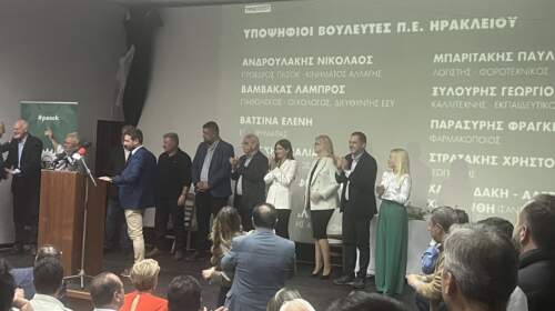 Παρουσιάστηκε χθες επίσημα, το ψηφοδέλτιο του ΠΑΣΟΚ στο ν.Ηρακλείου, παρουσία του πρώην Πρωθυπουργού και πρώην προέδρου του ΠΑΣΟΚ, Γιώργου Παπανδρέου. Ικανοποίηση και αισιοδοξία εκφράζει η Ελένη Βατσινά για την πορεία του ΠΑΣΟΚ στο ν.Ηρακλείου, μετά και τη χθεσινή θερμή υποδοχή του ψηφοδελτίου του κόμματος από τους πολίτες της Μεσαράς.Κατά την εκδήλωση παρουσίασης του ψηφοδελτίου στις Μοίρες, το βράδυ της Κυριακής,…