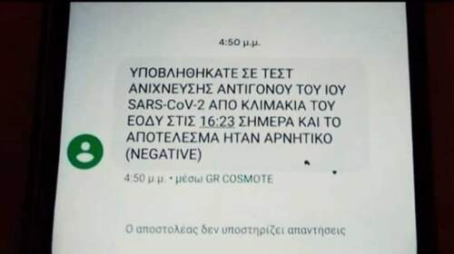 Read MoreΕνημερώθηκε με SMS από τον ΕΟΔΥ ότι δεν έχει κορονοϊό… ενώ δεν είχε κάνει τεστ! (Βίντεο)