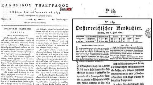 Δύο σημαντικά κείμενα – σπάνια ιστορικά ντοκουμέντα που αφορούν στην έναρξη της επανάστασης του 1821. Το πρώτο είναι μια επιστολή που είχε σταλεί από την Αθήνα στην αυστριακή εφημερίδα «Αυστριακός Παρατηρητής» (“Österreichischer Beobachter”) , με περιγραφή όλων των πρώτων γεγονότων της επανάστασης. Η επιστολή είχε ημερομηνία 5 Μαΐου 1821 και αναδημοσιεύτηκε στον «Ελληνικό Τηλέγραφο» στο φύλλο της 12ης Ιουνίου 1821.Ο…