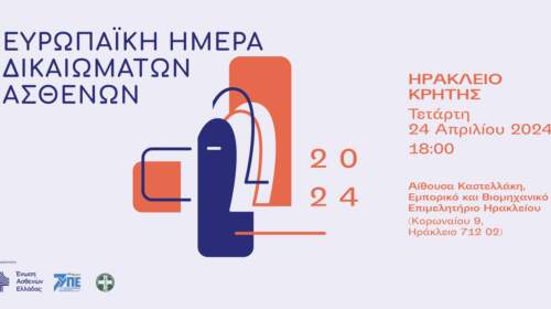 Ενημερωτική εκδήλωση ανοιχτή στο κοινό για τα 14 απαράγραπτα δικαιώματα των ασθενών, διοργανώνεται για πρώτη φορά στο Ηράκλειο Κρήτης από την Ένωση Ασθενών Ελλάδας, την 7η ΥΠΕ και τον Ιατρικό Σύλλογο Ηρακλείου, με αφορμή την Ευρωπαϊκή Ημέρα Δικαιωμάτων των Ασθενών (18 Απριλίου), την Τετάρτη 24 Απριλίου 2024 και ώρα 18:00 στην Αίθουσα Καστελλάκη του Εμπορικού και Βιομηχανικού Επιμελητηρίου Ηρακλείου (Κορωναίου 9, Ηράκλειο 712 02). Για πρώτη φορά,…
