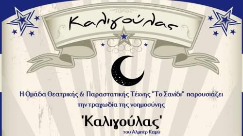Η «Ομάδα Θεατρικής & Παραστατικής Τέχνης Το Σανίδι» και η Περιφέρεια Κρήτης παρουσιάζουν την τραγωδία της νοημοσύνης «ΚΑΛΙΓΟΥΛΑΣ» του Αλμπέρ Καμύ. Άπιστος στον άνθρωπο από πίστη στον εαυτό του, ο Καλιγούλας, δέχεται να πεθάνει αφού έχει καταλάβει πως δεν σώζεσαι μόνος, πως δεν μπορείς να είσαι ελεύθερος ενάντια στους άλλους ανθρώπους. Θα δοθεί μια παράσταση το Σάββατο 5 Μαρτίου, στην…