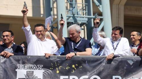 Ο βουλευτής Ηρακλείου του ΚΚΕ, Μανώλης Συντυχάκης, με τον προερχόμενο από το σημιτικό ΠΑΣΟΚ δήμαρχο Ηρακλείου, Αλέξη Καλοκαιρινό και τον αντιπεριφερειάρχη Ηρακλείου Νίκο Συριγωνάκη (κάποτε της ΝΔ και πλέον του ΠΑΣΟΚ, όπως ξεκαθαρίζει ο ίδιος), κηρύττουν την έναρξη της επανάστασης, ωχ, συγγνώμη του Run Greece στο Ηράκλειο. Και κάποιοι φαίνεται να ζορίζονται!