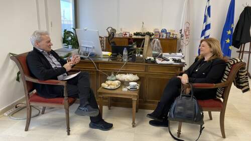 Τον Δήμαρχο Ηρακλείου Αλέξη Καλοκαιρινό επισκέφτηκε την Πέμπτη 4 Ιανουαρίου 2024 η επικεφαλής της Δημοτικής Παράταξης «Ηράκλειο για Σένα» Μαρία Καναβάκη. Κατά τη συνάντηση, που πραγματοποιήθηκε στο γραφείο του Δημάρχου σε πολύ καλό κλίμα, συζητήθηκαν πρακτικά ζητήματα λειτουργίας των Δημοτικών Παρατάξεων, όπως είναι η χωροταξική διευθέτηση των γραφείων τους, καθώς και πολιτικά θέματα, όπως η σπουδαιότητα της εποικοδομητικής κριτικής προς…
