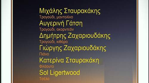 Κηποθέατρο «Μάνος Χατζιδάκις»Συναυλία με τον Μιχάλη Σταυρακάκη – Cretan Mandolin EnsembleΔευτέρα 22 Σεπτεμβρίου 2025 | Ώρα έναρξης: 21:00*Είσοδος ελεύθερη Συναυλία – αφιέρωμα στις συνθέσεις και στις παραλλαγές πάνω στην μουσική της ανατολικής Κρήτης. Συντελεστές:Μιχάλης Σταυρακάκης – Μαντολίνο, τραγούδιΑυγερινή Γάτση – Ακορντεόν, τραγούδιΓιώργης Ζαχαριουδάκης – ΠιάνοΚατερίνα Σταυρακάκη – ΦλάουτοΔημήτρης Ζαχαριουδάκης – Κιθάρα, τραγούδιSol Ligertwood – Τσέλο Συνδιοργάνωση: Περιφέρεια Κρήτης,  Υποστήριξη: Δήμος Ηρακλείου