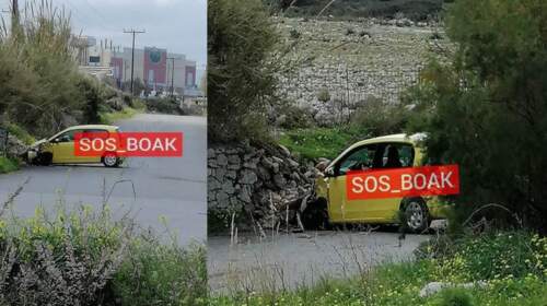Κρήτη: Τρελή πορεία αυτοκινήτου – Βρέθηκε στο αντίθετο ρεύμα και σταμάτησε όταν προσέκρουσε σε τοιχίο (Φωτο)