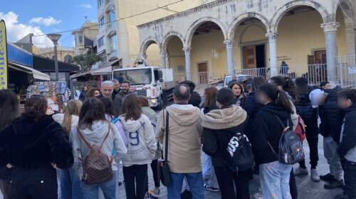 Μια ιδιαίτερη συνάντηση είχε το πρωί της Παρασκευής ο Δήμαρχος Ηρακλείου Αλέξης Καλοκαιρινός, στο πλαίσιο της αυτοψίας που πραγματοποιούσε στις εργασίες αποκατάστασης της ξύλινης επένδυσης της οροφής του προστώου της Βασιλικής του Αγίου Μάρκου. Μια ομάδα μαθητών του 13ου Γυμνασίου Ηρακλείου που πραγματοποιούσε εκπαιδευτική εκδρομή στο κέντρο της πόλης, συνάντησε τον Δήμαρχο Αλέξη Καλοκαιρινό και τον ενημέρωσε για τη δράση…