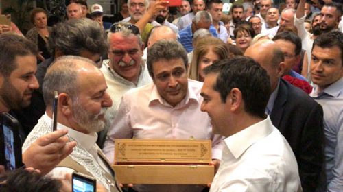 Ο Νίκος Ηγουμενίδης στην παράδοση Ο Μανώλης Πανακάκης, είναι ο Κρητικός που δώρισε στον Αλέξη Τσίπρα ένα οικογενειακό κειμήλιο. Δείτε: Το οικογενειακό κειμήλιο που δώρισε Κρητικός στον Αλ. Τσίπρα (Φωτο) Ο υποψήφιος βουλευτής Ηρακλείου του ΣΥΡΙΖΑ Νίκος Ηγουμενίδης υποδέχτηκε τον Πρωθυπουργό Αλέξη Τσίπρα στο Ηράκλειο μαζί με τον Μανώλη. Σχετικά με την παράδοση του οικογενειακού κειμήλιου είχε σταλεί σχετική επιστολή…