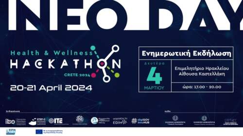 Εκδήλωση Ενημέρωσης από την Περιφέρεια Κρήτης για το «Μαραθώνιο Καινοτομίας Hackathon for Health and Wellness Crete 2024» Δευτέρα 4 Μαρτίου 2024, Ώρα Έναρξης: 17:00 Εμπορικό & Βιομηχανικό Επιμελητήριο Ηρακλείου (αίθουσα Καστελλάκη) Κορωναίου 9, Ηράκλειο Κρήτης Εκδήλωση Ενημέρωσης για το «Μαραθώνιο Καινοτομίας Hackathon for Health and Wellness Crete 2024» θα πραγματοποιηθεί την Δευτέρα 4 Μαρτίου 2024, από τις 5μμ έως 8μμ,…