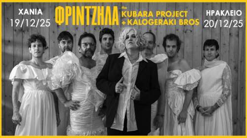 Χανιά Θέατρο Μ. Θεοδωράκης – Παρασκευή 19 Δεκεμβρίου 21:30 Ηράκλειο Cine STUDIO – Σάββατο 20 Δεκεμβρίου 21:30 Η Μάρθα Φριντζήλα παρουσιάζει το μουσικό υπερθέαμα Kubara Project Reloaded, παρέα με τους υπερήρωες που έχει για μπάντα και — φυσικά — με τα αγαπημένα της Καλογεράκια! Δεν έρχονται απλώς να παίξουν. Έρχονται να στήσουν ένα οδόφραγμα, έναν κόσμο ήχων, αγαπημένων προσώπων, ποίησης, αλληλεγγύης…