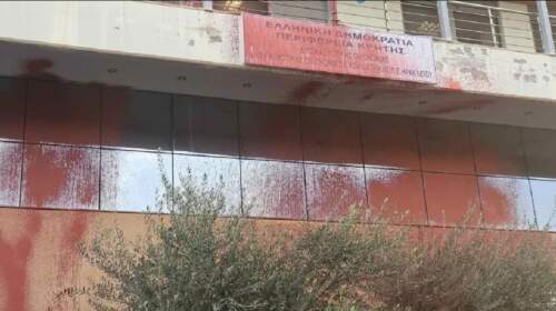 Κόκκινες μπογιές πέταξαν άγνωστοι στο κτίριο που στεγάζεται η διεύθυνση Αγροτικής Ανάπτυξης της περιφερειακής ενότητας Ηρακλείου. Η υπηρεσία βρίσκεται επί της λεωφόρου Νικολάου Πλαστήρα στο κέντρο του Ηρακλείου, ενώ ήδη έχει ενημερωθεί η αστυνομία. Σύμφωνα με τον αντιπεριφερειάρχη Ηρακλείου Νίκο Συριγωνάκη «ο δράστης ή οι δράστες είναι άγνωστοι, όπως και τα κίνητρά τους. Τέτοιες πράξεις είναι σαφώς καταδικαστέες, σίγουρα δεν…