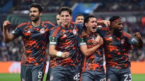 (EUROKINISSI/ΓΙΩΡΓΟΣ ΜΑΤΘΑΙΟΣ) Ιστορική νίκη του Ολυμπιακού καθώς έφυγε νικητής με 4-2 από την Άστον Βίλα και βρίσκεται μία ανάσα από τον τελικό του Conference League στη Νέα Φιλαδέλφεια. Κόντρα στην 4η ομάδα της εφετινής Premier League, ο Ολυμπιακός άριστα στημένος τακτικά και παρά τα μικρολαθάκια του, επέβαλλε το δικό του τέμπο και πήρε ένα ιστορικό διπλό, χάρις το χατ-τρικ του…