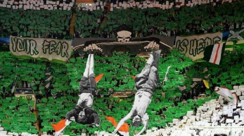 Σκούρα τα βρήκαν οι ακροδεξιοί οπαδοί της Λάτσιο που επιχείρησαν να προκαλέσουν εκείνους της Σέλτικ κάνοντας ναζιστικούς χαιρετισμούς κατά τη διάρκεια του ποδοσφαιρικού αγώνα των δύο ομάδων. Νωρίτερα έκαναν πορεία στους δρόμους της Γλασκόβης χαιρετώντας ναζιστικά. Η οργανωμένη απάντηση των οπαδών της Σέλτικ στους ναζιστικούς χαιρετισμούς ήταν… οργανωμένη και αποστομωτική. Γνωρίζοντας ήδη τις παραδοσιακές «πολιτικές» αναφορές των ακροδεξιών της Λάτσιο, οι πράσινοι είχαν ετοιμάσει ένα εντυπωσιακό κορεό…