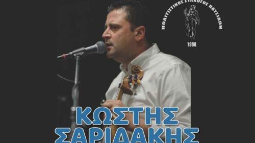 Με αφορμή την εορτή της Αγίας Παρασκευής Πολιούχου και Προστάτιδος των Πατσίδων Tην Τρίτη 25 Ιουλίου με αφορμή την Εορτή της Αγίας Παρασκευής Πολιούχου και Προστάτιδος των Πατσίδων ο Πολιτιστικός Σύλλογος Πατσίδων αμέσως μετά το πέρας του εσπερινού και της λιτανείας της θαυματουργής εικόνας της Αγίας Παρασκευής στα σοκάκια του παραδοσιακού χωριού συνοδεία βρακοφόρων,διοργανώνει Κρητική βραδιά με τον Κωστή Σαριδάκη…