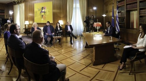 Για υποκρισία στο Μακεδονικό ζήτημα εγκαλεί τον Κυρ. Μητσοτάκη ο πρωθυπουργός Αλέξης Τσίπρας, σε συνέντευξή του στα περιφερειακά κανάλια: Ήπειρος TV1, Star Κεντρικής Ελλάδας, Ena Channel, Κρήτη TV, Ionian TV, TRT- Δίκτυο HELLASNET, Flash TV, Δέλτα Τηλεόραση. Η ανατροπή και η νίκη έστω και με μία ψήφο διαφορά είναι ο ρεαλιστικός στόχος του ΣΥΡΙΖΑ, δήλωσε ο πρωθυπουργός Αλέξης Τσίπρας, στην…