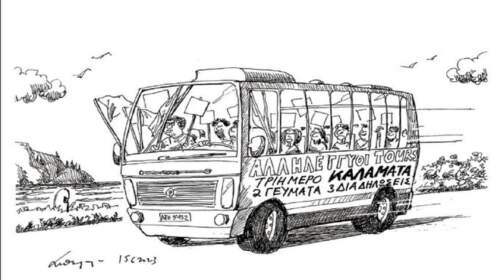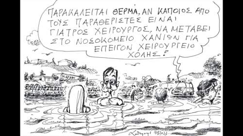 Η γελοιογραφία του Ανδρέα Πετρουλάκη στην (κυβερνητική) “Καθημερινή”, όχι στο Documento ή την Αυγή, τα λέει όλα για τον πρωθυπουργό Κυριάκο Μητσοτάκη. Ο άνθρωπος δε χάνει με τίποτα τις διακοπές του κι ας απολύει υπουργούς του επειδή έκαναν διακοπές ενώ καιγόταν η χώρα. Αυτό κάνει και τώρα. Τις τελευταίες ημέρες (και τις ημέρες που οι νεοναζί από την Κροατία προέλαυναν…