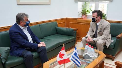 Στο Ηράκλειο βρίσκεται σήμερα ο πρέσβης του Καναδά που επισκέφτηκε τους εκπροσώπους των τοπικών φορέων αλλά και την έκθεση για τη Μάχη της Κρήτης. Συνάντηση με τον περιφερειάρχη Κρήτης Με τον Καναδό Πρέσβη Mark Allen συναντήθηκε σήμερα ο Περιφερειάρχης Κρήτης Σταύρος Αρναουτάκης. Η αύξηση των εξαγωγών ποιοτικών Κρητικών προϊόντων στο Καναδά, όπως επίσης η τόνωση του τουριστικού ρεύματος από το…